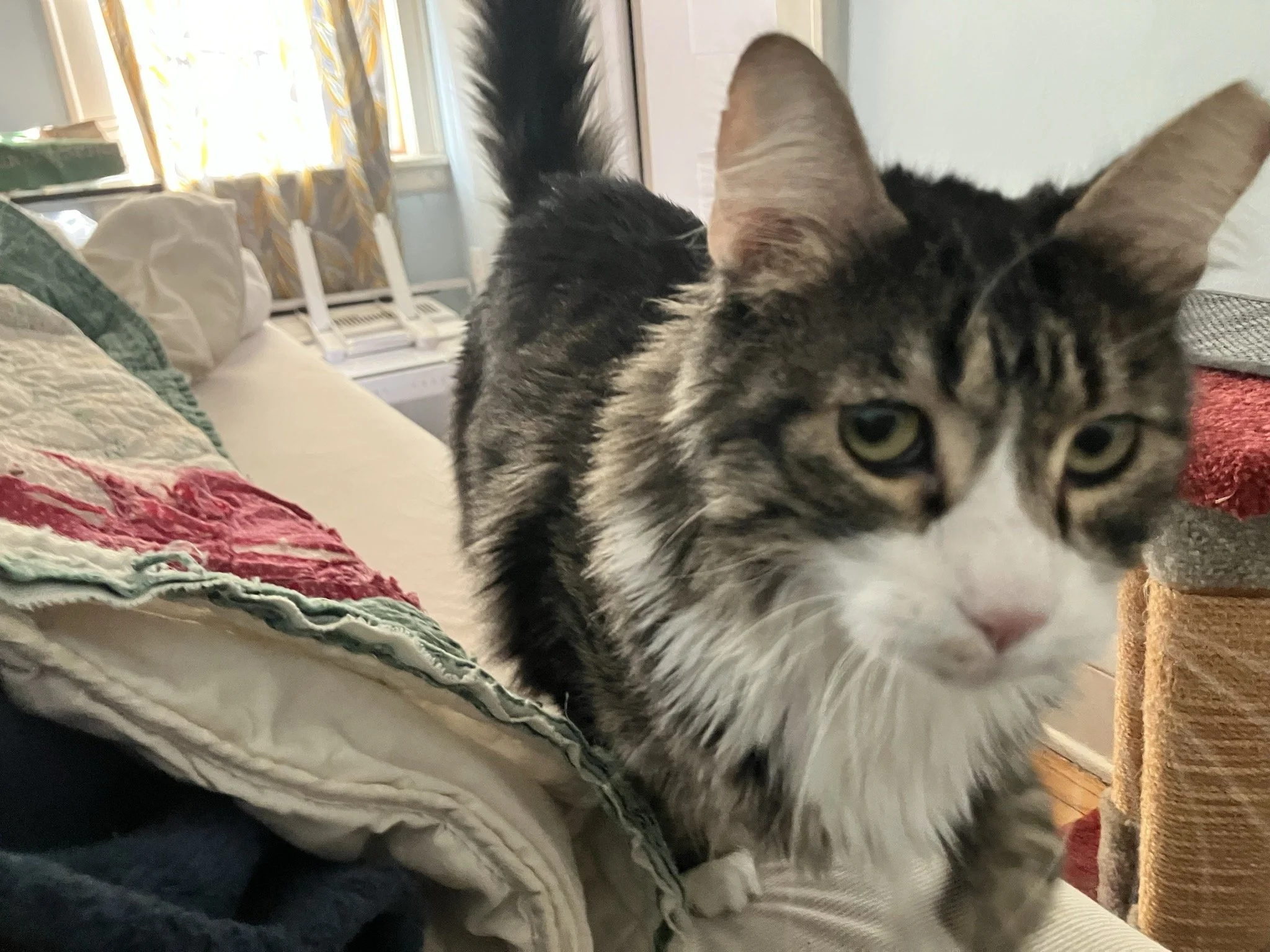 He has lived with other cats his whole life, so we're hoping that he'll be a second or third cat for a household looking to grow their family. He has never lived with dogs, but we think he would be fine with a very gentle, cat-friendly dog who lets him be. No small children, please. Older, respectful kids are okay.