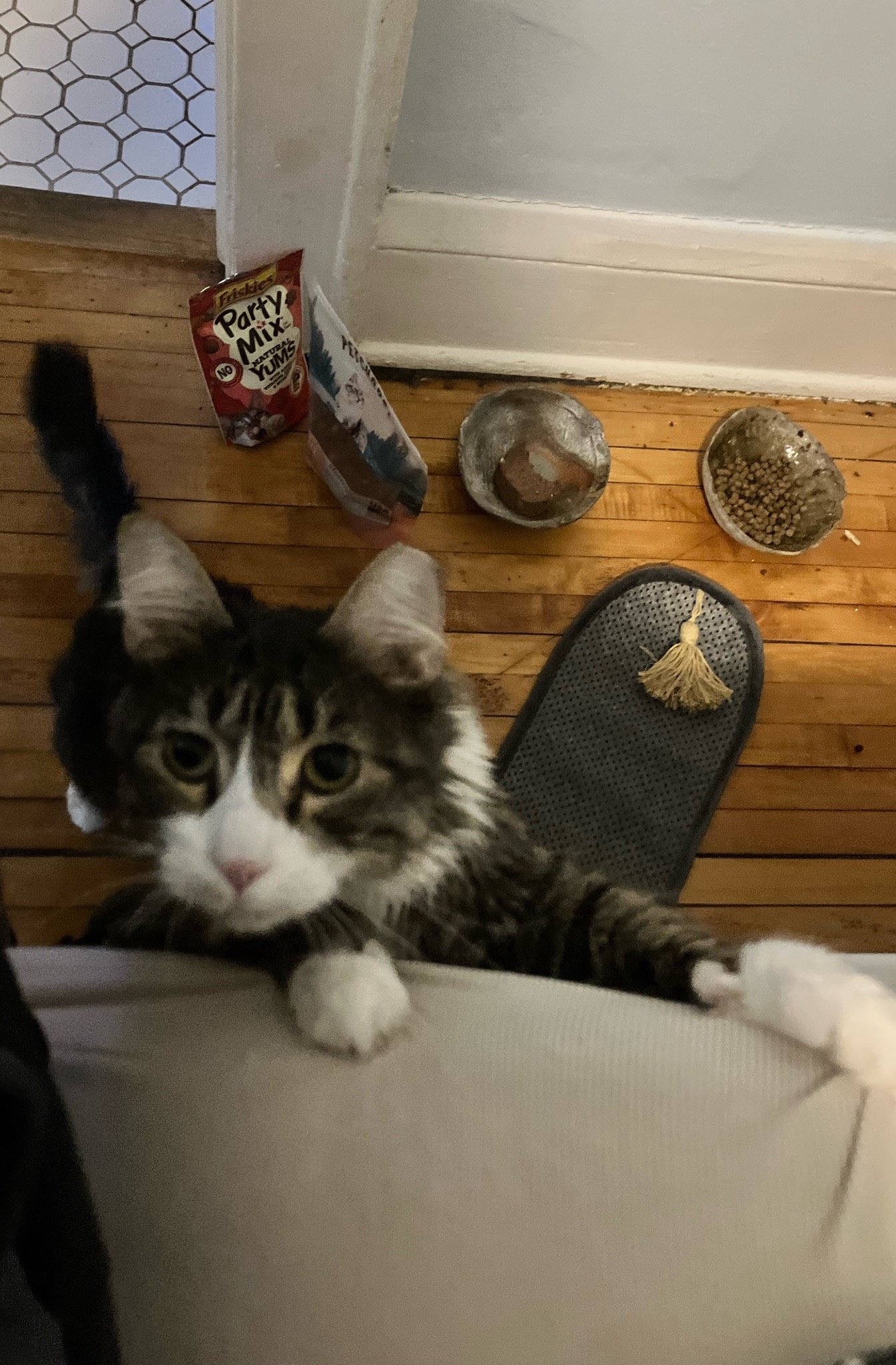 Arthur Dent is a sweet, submissive kitty who needed to be moved out of his foster home because he wouldn’t set a boundary with his foster brothers. He could be happy as an only cat, or with another very submissive cat. He is currently recovering from an injury sustained from being bullied and is healing well. His foster parent says that he’s an incredibly sweet, brave, and gentle boy, with the prettiest eyes.