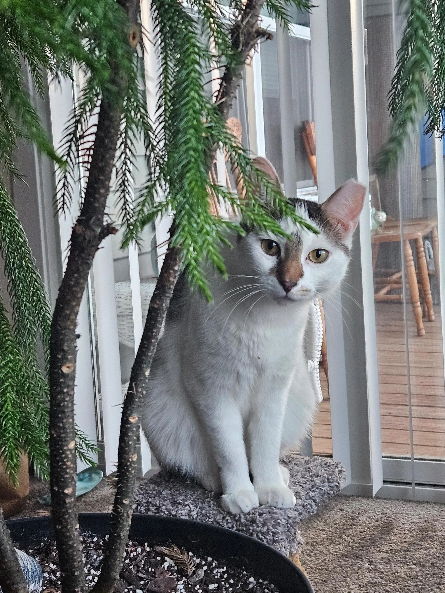 Benjamin is an outgoing sweetheart who is still finding his confidence. He loves perching on cat towers to observe his humans going about their day. His favorite hobbies are watching Cat TV, pushing things off counters, and staring out the windows. Churu treats are his favorite! Once he knows you are by his side to give him unconditional love, full body pets and scratches behind the ear are most desirable. Benjamin is curious about his housemates and takes a gentle approach to make others feel welcomed. He wants to join a home that helps him enrich his day with activities while also giving him elevated nap spots.